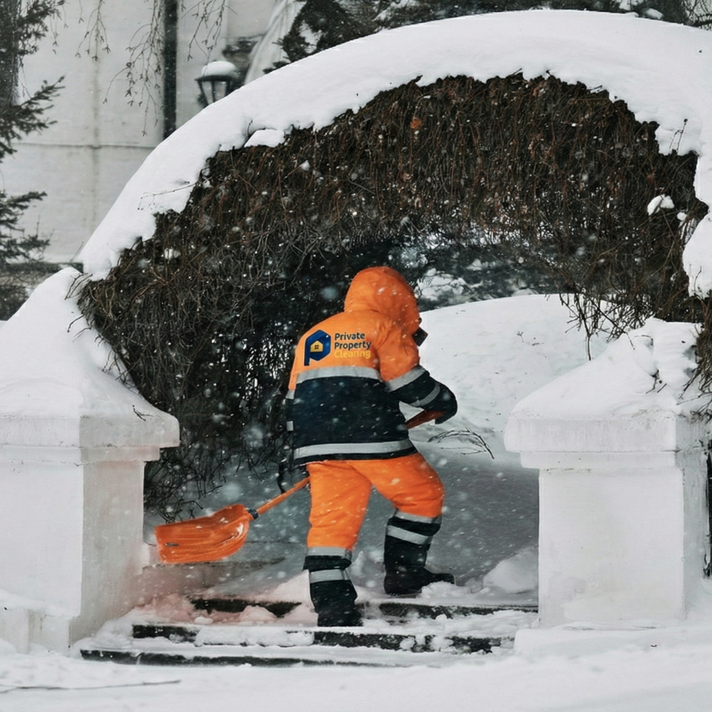 Eliminicion de hielo en las acceras, accsesos a zonas peatonales y rampa para vehiculos. Señalizacion de accesos de desvios